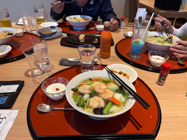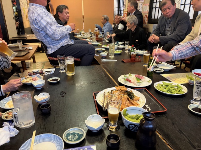昼食の酒が残っている状態で宴会を1時間前倒しで開催し鋭気を養う。1時間前倒しでも終了時間は予約通りのロング宴会。