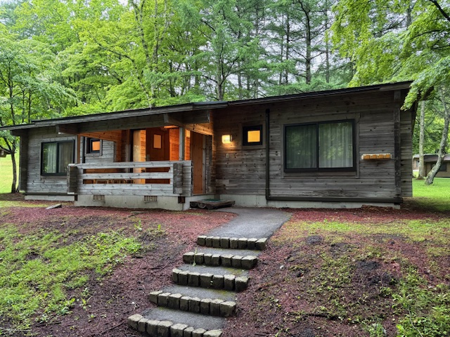 ゴルフ場敷地内のバンガローで二日酔いの朝を迎える。