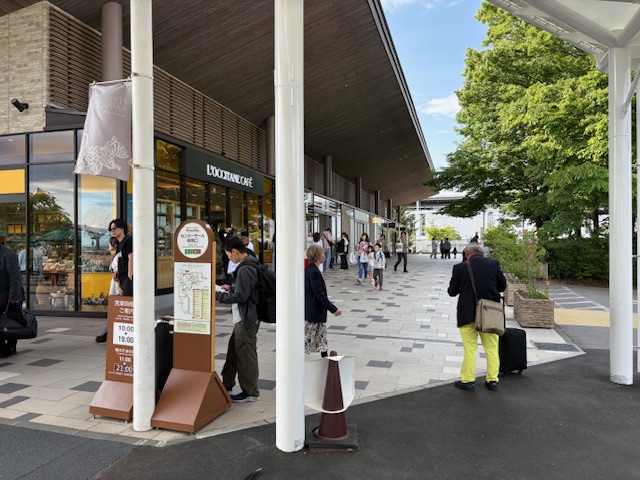 軽井沢駅周辺の買い物通り。お洒落な店ばかりで若者と外国人で溢れていて我々ロートルは駅構内の売店に移動して草刈り終了となりました。